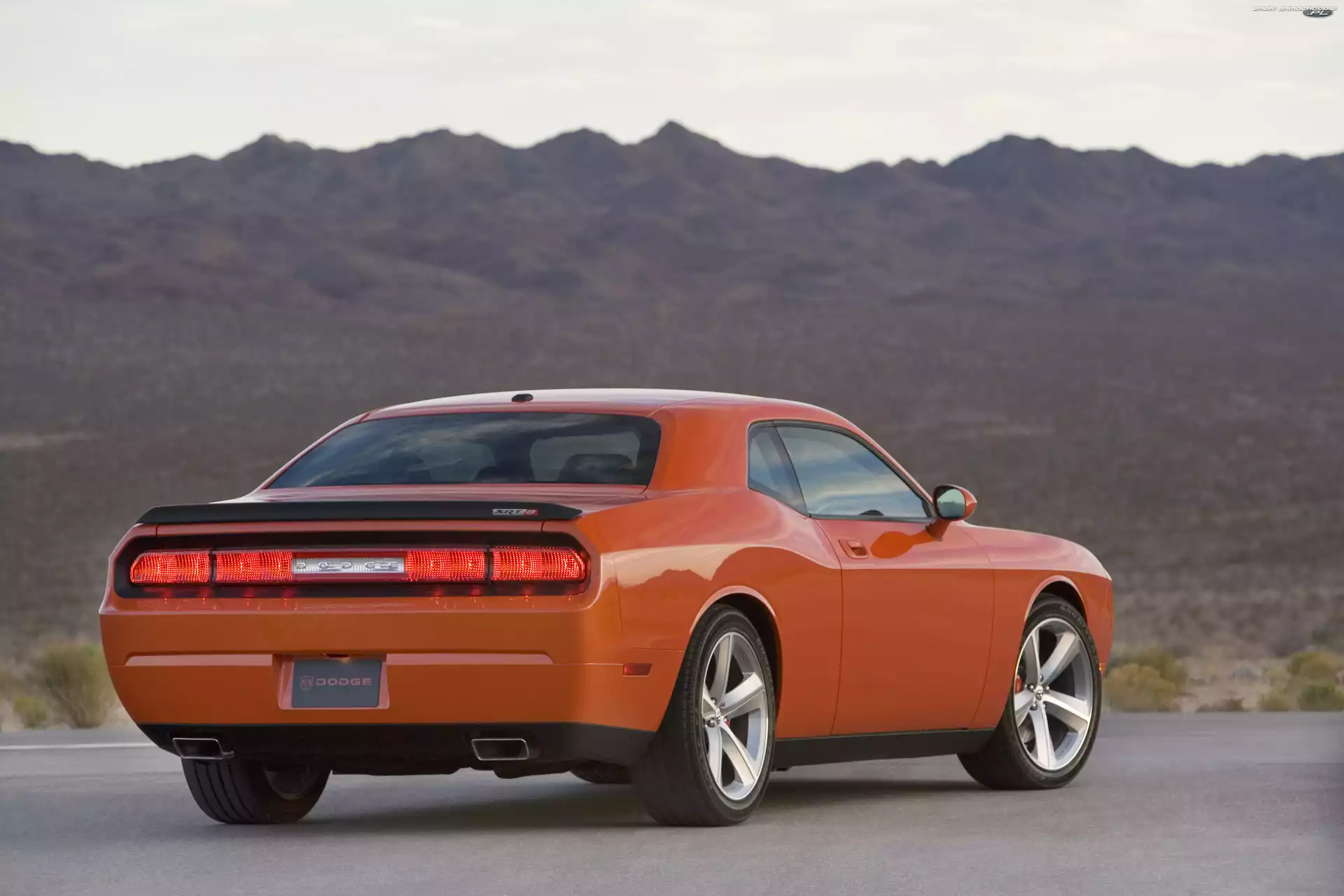 Samochód: Dodge Challenger, Tył, Pomarańczowy, Lampy