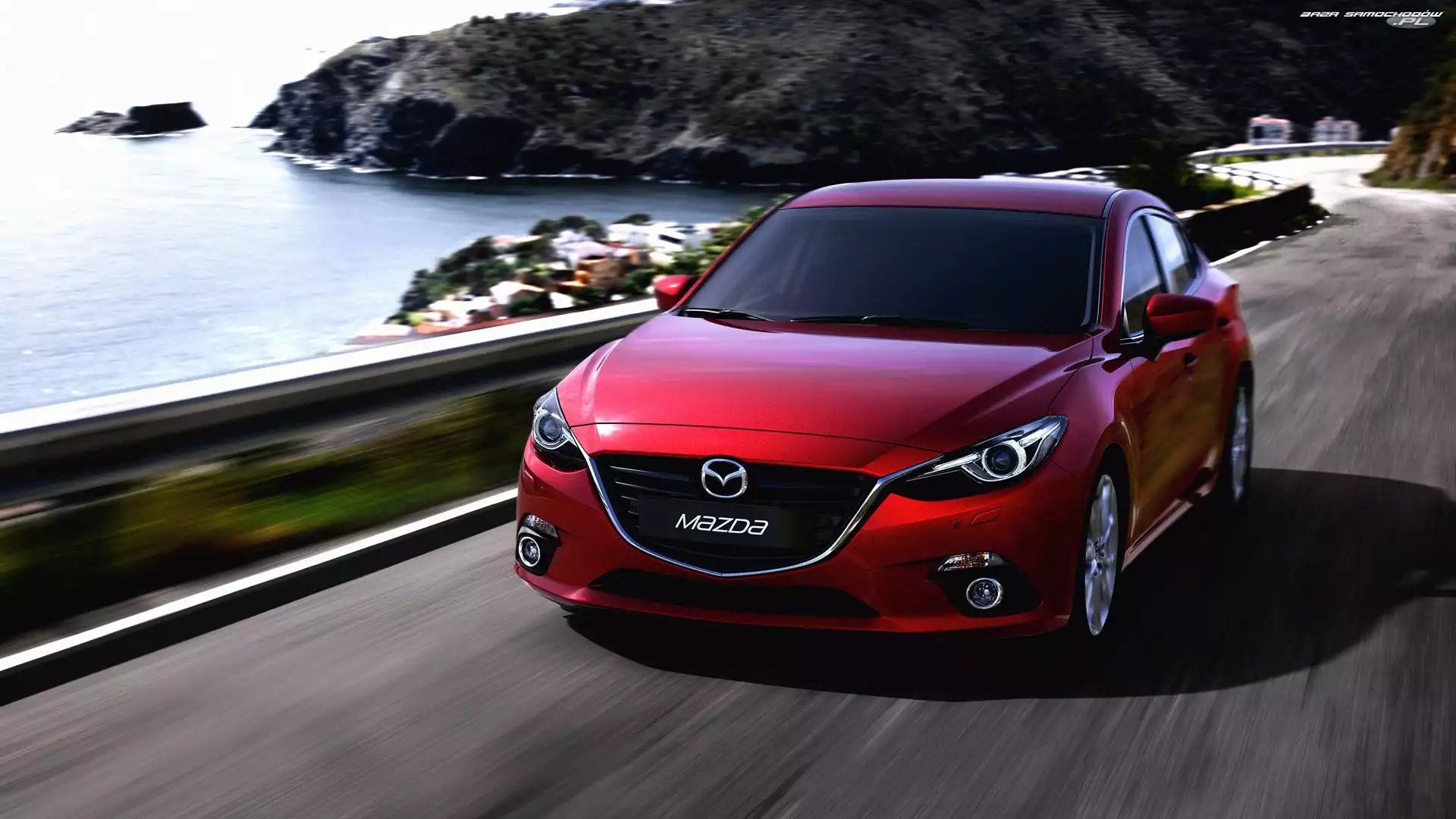 Droga, Skały, Mazda 3, Morze- Zdjęcia samochodów